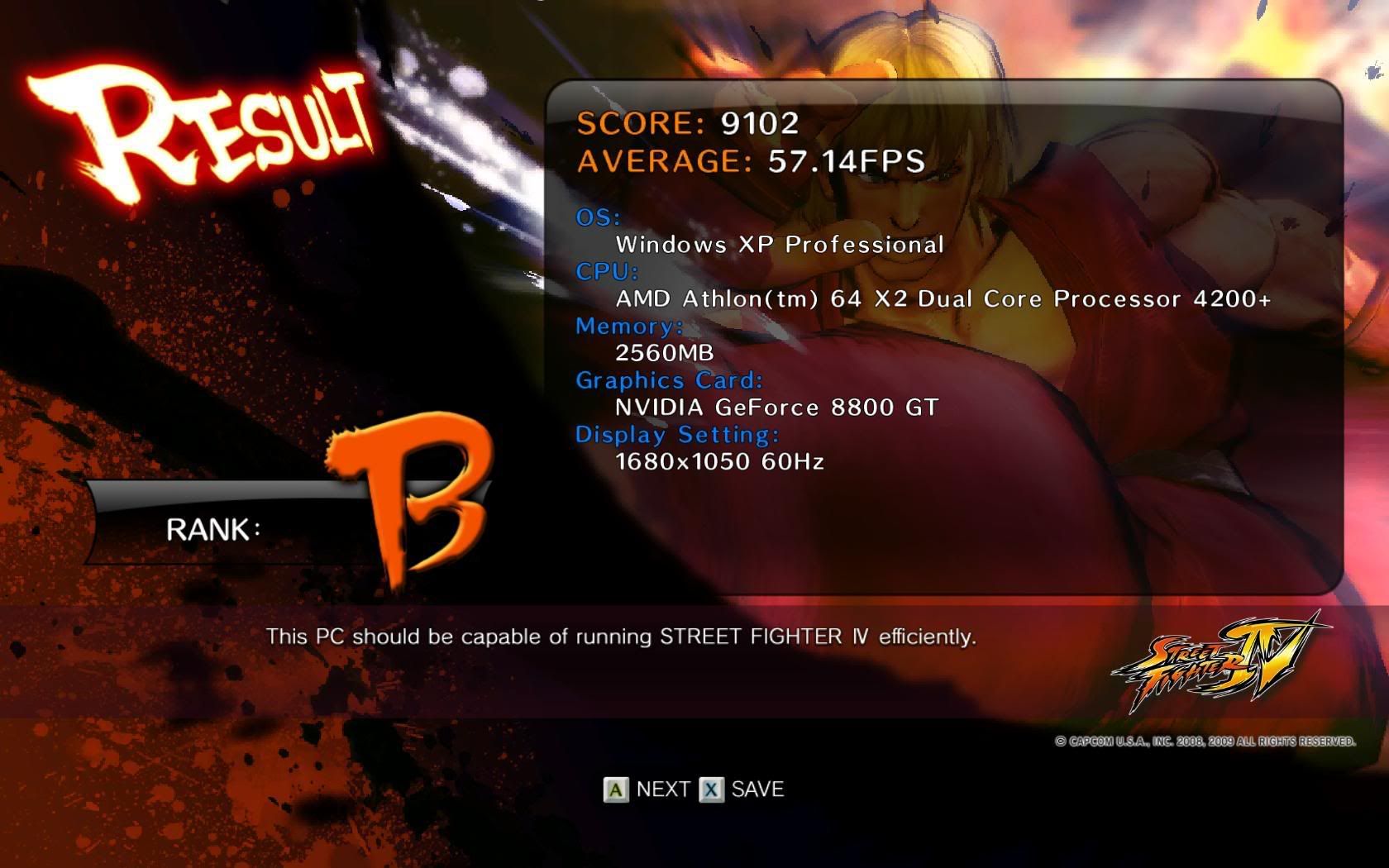AVERAGE: 59.21FPS OS: Windows XP Professional CPU: AMD Athlon(tm) 64 X2 Dual Core Processor 5000+ Memory: 3326MB Graphics Card: ATI Radeon HD 3800 Series Display Setting: 1680x1050 60Hz (c)CAPCOM U.S.A., INC. 2008, 2009 ALL RIGHTS RESERVED. SCORE: 7228 AVERAGE: 59.16FPS OS: Windows XP Professional CPU: AMD Athlon(tm) 64 X2 Dual Core Processor 5000+ Memory: 3326MB Graphics Card: ATI Radeon HD 3800 Series Display Setting: 1024x768 60Hz 8xAA (c)CAPCOM U.S.A., INC. 2008, 2009 ALL RIGHTS RESERVED. |