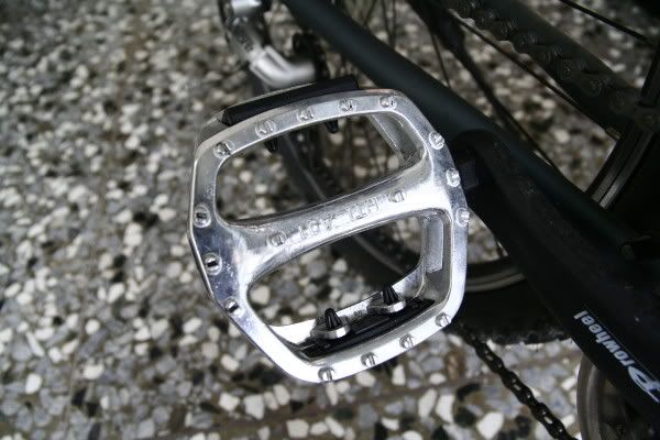 感謝xx123的分析 這幾天已經入手這組大面積踏板了 ![]() 入手價190塊 裝上去在踩踏的感覺很紮實 不太會讓腳滑來滑去的 起步的時候腳很容易找到踏板 雖然軸承不是培林的 不過感覺還不錯 我騎車不算是劇烈操駕山道狂奔型的... 要說缺點的話 應該是這組踏板的反光片是用插針式卡楯卡到踏板裡 (照片中看的出來) 所以不是很緊實.在踩動時會有反光片和踏板碰撞的扣扣聲響 我媽看我裝好也去騎個兩圈 說很好騎 她改天去買菜就騎這台去好了 結果今天一回家發現車子已經被裝上菜籃子了 Orz... |
