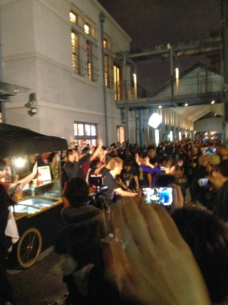 ![]() 圖片來源,官方FB粉絲團 這裡就直接跳過場地、購票等一堆不太愉快的事情,直接從11/22(五)開始吧∼ 11/22(五) 接機時間到11/20公布,這之前還想說可能不打算讓Fans接機,所以才遲遲沒有消息。不過,接機地點在松山機場,對我來說算是挺方便的,搭捷運去不用一小時就可以到了。 我大概是在19:40左右抵達,JL099班機預定抵達時間是21:00,所以覺得20:00前到應該就可以了。到之前,從FB上的現場回報狀況,估計來接機的人應該不會少於300人。到了現場,發現已經來了約150~200左右,主要的通道和好景點都有人先佔了。 最重要的是,沒過多久,班機抵達時間就變為提前到20:20了。從20:00之後,人潮陸續湧現,最大的一團就是接機團,他們的位置在前往出口的通道上,有安排一些接機的事宜要送給奈奈。不過,我看不到就是了。因為我的位置在入境出口的正面偏右的地方,等奈奈往出口移動時,根本無法穿過好幾層的人牆,看到通道上的狀況。 雖然奈奈一行人應該在20:30左右就入境了,不過他們似乎在等行李和討論接機的事情,所以到20:50才正式來到大廳。 此行,除了要目睹奈奈本人之外,最希望的就是能夠目睹三嶋P、矢吹和cherry boys。從迷上奈奈開始,三嶋P、矢吹和cherry boys就成為奈奈身邊不可或缺的關鍵人物。不過,三嶋P這位大製作人真的很低調,明明入境時就是走在奈奈後面,結果一下子就閃到旁邊的工作人員中了。讓我當時以為三嶋P沒有跟著過來,後來從影片中才看到三嶋P一閃即逝的身影,真的太低調了。而且當奈奈走過通道時,三嶋P就跟在攝影師的後面,一點也不打算讓自己入鏡的樣子。 在機場看到的奈奈不太多,因為前面的巨人多,而且手上的武器又大,被擋來擋去,當奈奈走過通道到機場外時,也沒辦法跟過去,光是數層厚的人牆就放棄了。但也正因為奈奈吸引走了大多數的Fans,所以入境出口頓時空了出來,讓我有幸一睹矢吹和cherry boys,拍到了幾張照片。 都沒人跟我搶,超讚的!被攝影機檔到的那位是鼓手阿部薫(アベサマ)。 由左至右是吉他手北島健二(ケニー)、鍵盤大平勉(トム君)、音樂兼演唱會製作人矢吹俊郎(トシちゃん)、吉他手渡辺格(イタルビッチ) 和貝斯手兼MC阪本竜太(りゅーたん)。 イタルビッチ在跟我(?)揮手,讚啦! 帶來的樂器器材超多。 再補充個沒有照片的花絮。當奈奈離開後,就到機場外和朋友碰頭,發現cherry boys他們還在裝載行李,還沒有離開,最神奇的是居然沒有人圍在他們旁邊。所以我就大膽地走到黑色廂型車旁邊看他們裝載行李,不過沒有拍照就是了,怕打擾到他們。 11/23(六) 這天早上九點半出發去會場排物販。因為預計排物販的人應該約1000∼1500左右,比起今年初的GRACE OPUSII那種動不動就五、六千的排隊潮,應該會輕鬆很多,況且我沒有要收徽章,因此打算輕鬆點。 到了會場,人潮確實沒有好幾千人,我排的位置約在300左右,300這個數字是工作人員報的,不過我自己一路走過來,估計應該到400了。開始排的時間是11:10。當天上午天氣很熱,太陽很大,和昨天的陰冷完全不一樣,傳說果然是真的。 我排的位置剛好被夾在兩團日本人中間,我還以為衝來台灣的日本人會很拼的清晨就來排。在排的時候,剛好就出現了一個路邊攤來賣周邊,有一堆手燈和顯然是沒有經過授權的各種印有肖像的商品。真的是不知道該怎麼說才好,他們做生意都沒有想過這場LIVE不只會有日本人來看,還會有日本的媒體記者來拍,甚至還有NHK的全程影像紀錄耶∼實在是... 今天的物販是13:00開賣,所以在開賣前就站了快兩小時。開賣後發現前進速度實在很慢,原因是服務窗口只有開三個,旁邊另一棚並沒有開張,事實上第二天也沒有打開,那一棚不會是只當倉庫在用吧? 在排隊時,剛好遇到NHK的攝影師來採訪我前面的兩個女孩子,因為她們其中一人有穿台灣非官方的奈T,所以就被相中了。訪問的內容蠻簡單的,都是常見的提問,就不多說了,到時候在MJ上撥出時就知道了。應該會被剪進去吧∼ 我買完物販大概是15:30左右,跟我在GRACE OPUSII排的時間差不多,真是離譜的慢。同樣的,物販第一個售光的就是徽章和T恤的XL號。幸好我買L號也OK。 在會場展出的同人圖大看板。 物販收穫。手燈、場刊和明信片是必收的,特別是場刊,這個是最超值的寫真書。而手燈則是值得留念的紀念品,不管有沒有王劍,手燈都是要買的。 因為有幫朋友買物販,所以總共有12張NANA CARD。不知道為什麼,開第一包的時候就有預感會是閃卡,結果真的中了。 因為幫朋友買,所以朋友就讓我可以先挑整套,多出來的四張就給朋友了。 卡包沒有特別做成CIRCUS+的版本。 閃卡和普卡的背面。 明信片ABC。 官方手燈,手上沒有王劍的推薦買一隻比較好。不然,在入場前,PPT奈板也有在免費發放UO,反正就是不要空手進去,不然會感覺很孤單。 背面的說明都換成中文的。 場刊。 場刊果然是物超所值的好東西。 黑T的袋子,因為黑T已經拿去洗了XD,之後有空再補圖吧∼ 雖然對這次的台灣主辦方頗有怨言,但為了台灣版限定海報,還是支持,收了一張THE MUSEUM,這張台版應該會保持原樣,不打算拆封。因為我日版的早就收齊了,台版的留作紀念吧。至於其他的台版也不會先收,等明年再來開LIVE時,再來收。 賣CD/DVD的地方在會場門口,在哪裡就能清楚聽到排演的聲音。 台灣版的海報有印上2014的年曆。 雖然沒有11/23的票,我也沒打算向黃牛低頭,所以我