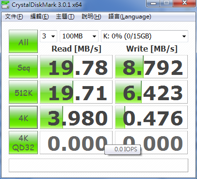再來是FDBENCH,讀取大約是18.9MB/S,寫入是7MB/S。