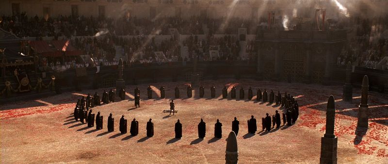 ![]() 如果你發現落單了,獨自一人在草原上奔馳,陽光照耀在你的臉上,不要害怕。 他本想在盡公民義務後回到他那溫暖的家鄉當一個平凡的農夫,但突然的劇變摧毀了他曾珍視的一切,一無所有的他本想靜靜跟隨他們而去,但又被喚回這個世界,因為他還未完成被賦予的最後任務。在他完成最後的任務之後,他將被允諾去到那有溫暖的陽光和草原的所在,去到那至福之地與他們相會。 而競技場中的沙地仍是羅馬人的主宰,為了沙與血而賣出了自己的權力和自由。 Farmer & General ![]() 麥希穆斯(Maximus Decimus Meridius)是身經百戰的將軍,對金錢與權力不感興趣,他只渴望著回到平凡寧靜的生活,回到家鄉做一個好丈夫、好父親和他最熱愛工作,一個農夫。他也敬愛羅馬的偉大與文明,更因為馬可斯奧里略斯(Marcus Aurelius)皇帝是他所最敬愛的人,所以他願意服從奧里略斯皇帝的命令,作一個羅馬公民為羅馬奮戰,擊敗羅馬的敵人,侍奉著奧里略斯皇帝所帶領的羅馬帝國。 ![]() 至少在打敗日耳曼蠻族最後一處據點之前,這一切就是麥希穆斯的信念。他相信在這場戰鬥之後,羅馬就沒有敵人了,他為羅馬該盡的義務都已經完成了,他完成了奧里略斯皇帝賦予給他的任務,現在,他終於可以卸下盔甲回家了。 ![]() 雖然他已征戰多年,身上早已沾滿了戰場的血,但他在每次戰鬥開始之前,都會先用沙土搓揉雙手,似乎是在提醒著自己,不論他待會殺了多少人,他希望自己還是個農夫,在雙手沾滿鮮血之前,用沙土隔離血腥,再次記得撫摸大地的感覺。 ![]() 在洗去血腥之後,雙手仍會記得觸摸大地的感受,他仍渴望著用雙手去感受那一片金黃的農田。 ![]() 殺人不是必要的,他只是拿取他所需要的,他只需要再殺一個人就好,不必流不必要的血。 ![]() 對麥希穆斯而言,在競技場上他只是試著生存下去,就像在戰場上一樣,他不渴望殺戮,如果能終止爭鬥,他會很樂意放下武器,因為他只是個農夫,並不想讓雙手沾上更多的血。 Strength & Honor ![]() 身為羅馬的軍人,他相信勇氣和榮耀是羅馬軍人存在的意義。他用勇氣與榮耀來鼓勵下屬和同僚,不要害怕死亡,懷抱著勇氣為羅馬而戰,想像著在戰鬥之後的美好生活,就算戰死了,永恆的榮耀將使你不朽。 ![]() 但勇氣與榮耀卻在政治局勢快速動盪之下成了幻影,昔日在戰場上共同作戰的同僚昆圖斯(Quintus)屈服於權勢和陰謀,在麥希穆斯的眼前將勇氣與榮耀捨棄了,選擇向權勢屈服。 ![]() 而勇氣與榮耀則跟隨著麥希穆斯,不論他去到哪裡,變成了奴隸或是角鬥士,勇氣與榮耀為麥希穆斯聚集了一群夥伴。與之相對的,昆圖斯和他的禁衛軍則不再擁有勇氣與榮耀了。 ![]() 康默德斯為帕西蒙帶來的豐厚的金錢,但帕西蒙卻是因奧里略斯才有了自由之身。一個反對競技場搏鬥,一個卻大肆舉辦競技場活動。 ![]() 該是利慾薰心的帕西蒙,卻選擇了勇氣與榮耀。因為,我們不過是凡人肉身,必有終歸塵土的一刻,Shadows And Dust。 SPQR & Barbarian ![]() 文明是麥希穆斯和許多羅馬人自認為羅馬偉大的原因,相對的,日耳曼蠻族的野蠻就是羅馬的相對面,代表著未開化、落後、殘暴的一面。 ![]() 這些野蠻的民族是麥希穆斯誤以為羅馬的唯一敵人,沒想到看得見的敵人並不可怕,看不見的敵人,那些潛藏在帝國內的才是羅馬真正的敵人。 ![]() 可是來到了競技場,麥希穆斯才首次真正地認識羅馬是甚麼樣的地方,以及為什麼奧里略斯皇帝要禁止競技場搏鬥。 ![]() 在競技場,麥希穆斯見到了羅馬人野蠻、殘暴的一面,與日耳曼蠻族為生存空間而戰不同,競技場的人們只是來娛樂的,來把他們的快樂建立在場中的死亡上,而這會是奧里略斯皇帝追求的羅馬嗎? ![]() SPQR是每一個羅馬軍人左手臂上都有的刺青,代表著Senātus Populus Que Rōmānus(元老院與羅馬人民),象徵這名士兵的所屬。 ![]() SPQR是麥希穆斯原本所認定的文明象徵,代表著羅馬的強大與偉大。當他在被昆圖斯背叛之後,在手臂的SPQR刺青上被禁衛軍砍了一刀,就表示著軍人的劍在SPQR之上,血腥的爭鬥才是羅馬的本質,並不是SPQR。 ![]() 失去共和的羅馬人早已遺忘SPQR是什麼滋味,只能沉浸在競技場上的血腥娛樂來麻痺自己,忘卻康默德斯的恣意妄為,任憑康默德斯操縱羅馬公民的尊嚴和踐踏元老院的神聖。 Empire & Republic ![]() 羅馬的共和自屋大維之後就成了歷史名詞,不論元老院的權力在哪,羅馬的共和都已成為歷史往事,皇帝就是羅馬最高的實質統治者。奧里略斯皇帝不論他是真心想要還政於民,還是追求歷史定位,他苦心安排將帝國的命運要交給沒有野心的麥希穆斯,希望由他來作帝國的最後一任皇帝,終結羅馬帝國,回到共和。 ![]() 皇帝的權力之大吸引了康默德斯,他對權力的野心壓過了親情,他渴望用他自己的方式來證明自己也可以成為另一種偉大的皇帝,並且超越奧里略斯皇帝的功業,創造千秋萬世的帝國。 ![]() 帝國內的權力鬥爭發生在競技場上,圍觀的羅馬人不知道他們吶喊的不是麥希穆斯或康默德斯的生死決鬥,而是自己的命運。羅馬人的未來不是由羅馬人親手爭取的,甚至連這場搏鬥所代表的意義也不知道。 ![]() 羅馬人怎麼也沒想到羅馬的命運會發生在他們用來娛樂的競技場上,羅馬人的未來是由場上的奴隸所決定的。羅馬人在不弄髒雙手下享受著血腥的野蠻,卻沒料到帝國與共和之爭就發生在這個野蠻的競技場上而一無所知。 ![]() 偉大