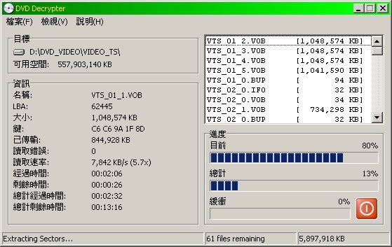 先使用DVD Decrypter 3.5.4.0 把DVD拷到硬碟裡﹝System-01﹞