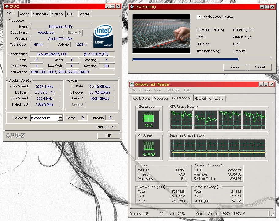 OPSYY DAISY ... 哈哈 ... 有WoodCrest Server級 雙CPU來踢館 ... 但很可惜, 你跟我測的不同品質