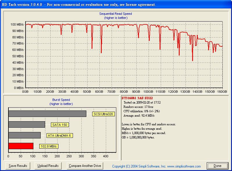 控制卡.由於公司電腦只有PCI插槽,只能找市面上的PCI SATA/SATA Raid卡來試....先看 這次測試的三位主角的相關圖片. 先登場的是Seagate Barracuda 7200.11 ST3160813AS ![]() 原以為市售的160G HD還是舊版的,沒想到是賣第11代的...只是,11代的梭魚不是都是快取 32M嗎,為什麼我看到的是只有8M快取的?? 再來是兩張PCI SATA卡,都是號稱可以HD開機,支援Raid....但結果卻大不相同.... 第一張 Silicon Image 3114 晶片,提供4Port SATA接頭,包裝上寫只支援到SATA I... 蠻 誠實的... ![]() 第二張VIA 6421 SATA卡,有2SATA+ IDE及 1SATA+1eSATA+IDE,這回是買後者,包裝 的文字號稱寫"支援SATA 3Gb/s"...但自己知道那是騙人的... ![]() Silicon Image 3114 若不作Raid,只接單碟在BIOS及進入Windows可以看得裝置,卻無法 單碟開機,不知是那裡出問題了.... 店家維修部一直對我強調說要用F6磁片安裝,簡直把我當 白癡~~ 問題不在於無法進系統,而是根本不能單碟硬碟開機,且DOS環境利用Ghost 的INT13H也抓不到單碟的資料(已先利用Windows抓到HD並已分割自舊碟完整移 轉)... 很火大之下,跟它們的業務要求換貨成較便宜的VIA6421晶片....一切就正常了,不但 可以單碟HD開機,也可以在DOS下的Ghost看到硬碟內的資料............. 真不知某家維修部的人是把每個使用者當笨蛋嗎?把卡送回去讓他當場測試,他也看到卡的 BIOS出現無開機裝置的訊息,就硬要說沒F6所以不能開機,這跟F6有啥關係,真搞不懂 測試環境: CPU: P4-1.8AG (oc 2.3G) M/B: 聯強 845E (DFI代工的樣子) OS: C-Windows XP PRO SP3 HD: Seagate Barracuda 7200.11 ST3160813AS(無設Jump,直接跑預設SATA2模式) PCI SATA卡:伽利略Silicon Image 3114 PCI, 伽利略 VIA6421 PCI 回到正題,這是SIL3114沒拿去換之前,只測的HD-Tach傳輸數據,忘了測HD-Tune SIL3114 HD-Tach Quick ![]() SIL3114 HD-Tach Long ![]() VIA 6421 HD-Tune Benchmark ![]() VIA 6421 HD-Tune File Benchmark ![]() VIA6421 HD-Tach Quick ![]() VIA6421 HD-Tach Long ![]() 測試心得 1. SIL3114的實用傳輸時,感覺讀取時間似乎稍短些,同樣HD Ghost對拷的環境,但由於板 卡無法利用INT13H在DOS下直接讓Ghost抓到,只能進入Windows環境,利用Ghost32 或Ghost64才能抓到HD,加上單碟又不能開機....只好割愛了,不知是廠商原本設計的問 題? 還是又要讓買家當白老鼠了,但為什麼我那麼衰,每次測這些東西,都會發現到廠商的 問題.. 2. VIA6421是已更新的最新版本的Driver,效能才有明顯改善,若用包裝內附Driver更慘不 忍 賭....看在它有SIL3114沒有發生的問題,加上又提供eSATA接頭,不失為是廉價PCI SATA或SATA Raid卡的解決方案..... 3. 卡在PCI頻寬的現實環境下, Barracuda 7200.11大概已發揮到極限了,也顯示了PCI頻 寬或是IDE的上限只有SATA理論值的7成左右....不過公司沒錢換新的,只好讓它委曲使 用中.. 4. Barracuda 7200.11的Access Time 也太慢了... 昏倒.... 不過比起其它HD的讀取聲 音,算偏小聲的,或許是它的優點吧, HD-Tune內無法開AAM,所以也放棄提高它的效能... ![]() 此文章於 2009-02-21 07:57 PM 被 巫佚 編輯. |