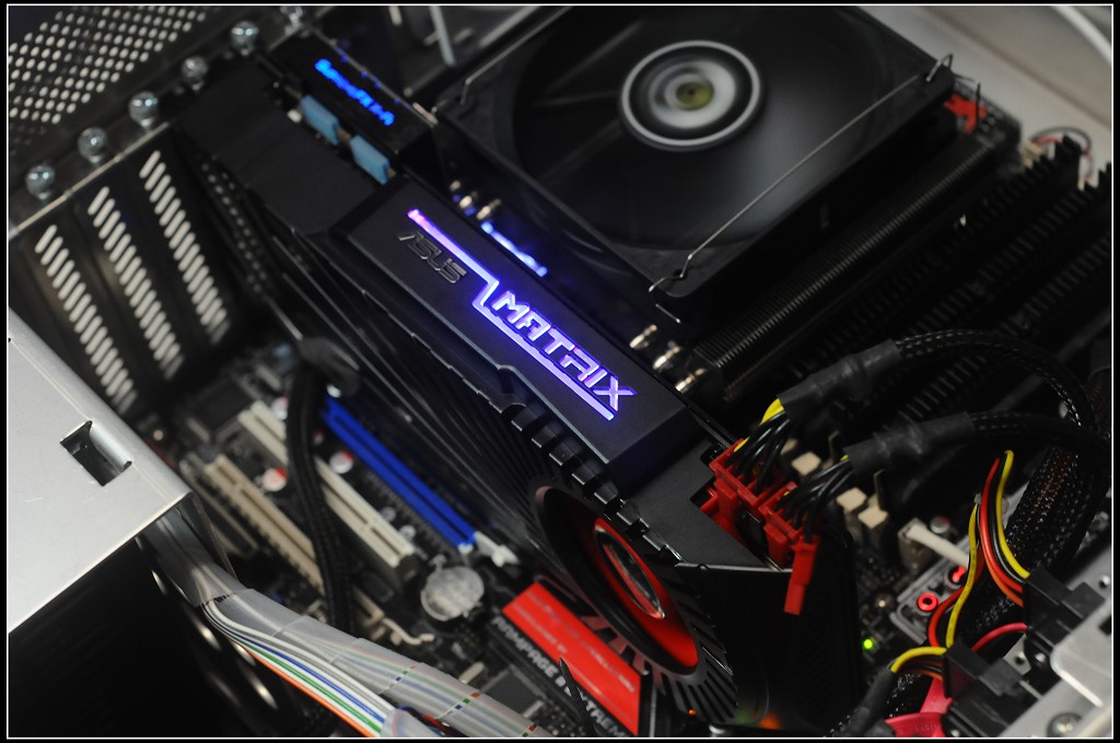 特別在顯示卡正上方做硬體監控燈, 透過MATRIX字眼來呈現. 上機後非常漂亮!!