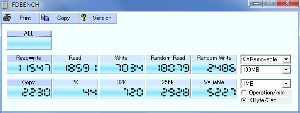 Data Traveler G3 16GB包裝正面,採用USB2.0介面,官方數據為讀取10MB/S,寫入5MB/S。此款隨身碟提供五年保固。 Data Traveler G3 16GB背面,有個http://www.kingston.com/wa的網址,其實就是保固說明網頁。 如果包裝呈現的是正面,那這就是背面的部分,有著Kingston的商標。 Data Traveler G3 16GB正面 Data Traveler G3 16GB尾端有吊飾孔,採用一般常見的拔蓋設計,有點小可惜的是無法將蓋子蓋在尾端。 測試數據 ![]() 讀取最大值有19MB/S ![]() CrystalDiskMark有點問題,最後一項測試到一半會沒有回應,因此只測試了三項。 數據也是比官方數據好很多。 ![]() 再來是FDBENCH,讀取大約是18.9MB/S,寫入是7MB/S。 雖然還稱不上是高速隨身碟,但也還算不錯,而且消費者買回去還有賺到的感覺XD。 同步發表於部落格