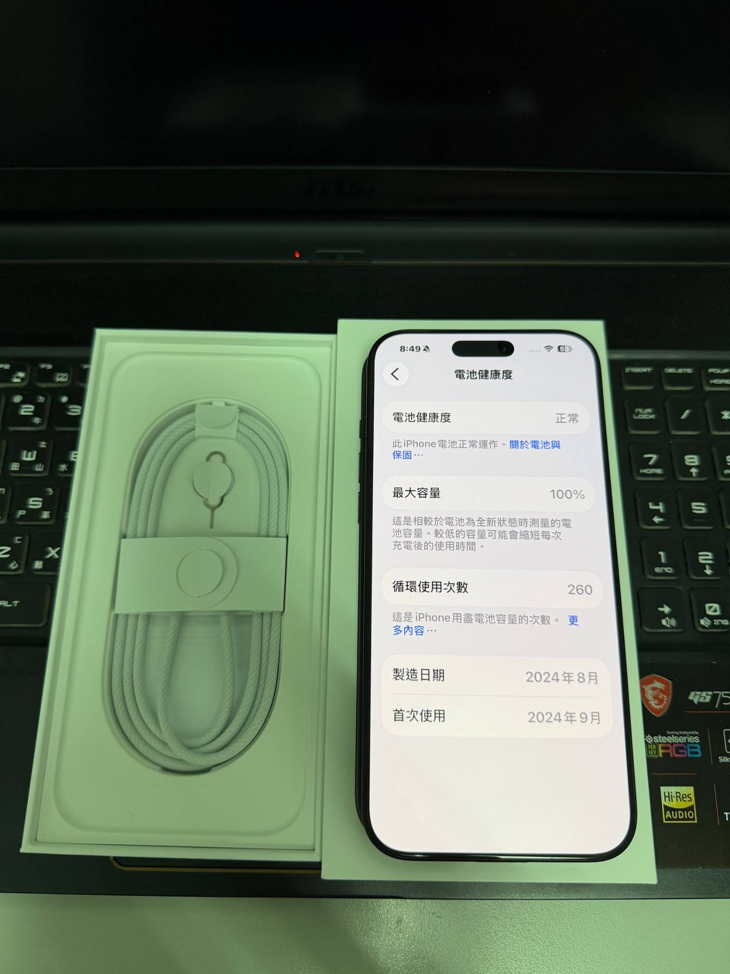購買日期 2024/9/20,因升級故售出 售價︰$37000 1.保固狀況︰2025/9/21日 - 已過保 2.電池狀況︰循環次數260次 / 電池健康:100% (開85%充電上限,偶爾充100%) 3.手機狀況︰9.9成新,邊匡背蓋等肉眼看不出刮傷、手機到手後保護貼/鏡頭保護貼一直有貼 4.使用狀況︰沒有玩遊戲、主要用於工作及私人拍照錄影 5.手機配件︰原廠盒子、幾個保護殼(兩個用過其它全新) 1張微沙霧面貼/3張高清貼/3個鏡頭貼 6.三顆鏡頭皆無入塵,帶相機支架鋁框的手機殼背面表皮有脫落、充電口有貼保護貼 高單價商品建議面交 面交地點︰彰化約超商、外縣市可到員林火車站面交 Ps... 目前手機貼的是微沙霧面貼已經貼快半年,品質還不錯建議繼續使用 若不要鏡頭保護貼我可以交機前幫移除,這張滿匡鏡頭保護貼品質也不錯 使用過的手機殼不介意的話我會清洗過附贈 ![]() ![]() ![]() ![]() ![]() ![]() ![]() ![]()