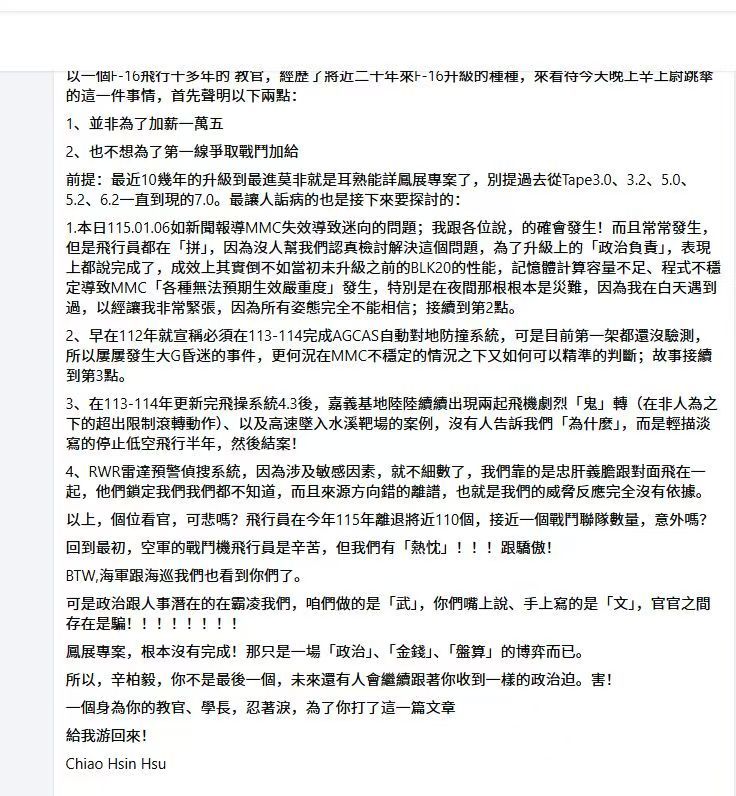 台軍F-16資深飛行教官在靠北長官爆料,F-16大規模升級後,RWR「雷達預警偵搜系統」仍難對解放軍雷達做出有效反應,被鎖定了不是沒反應就是亂指威脅輻射源方向,十分離譜