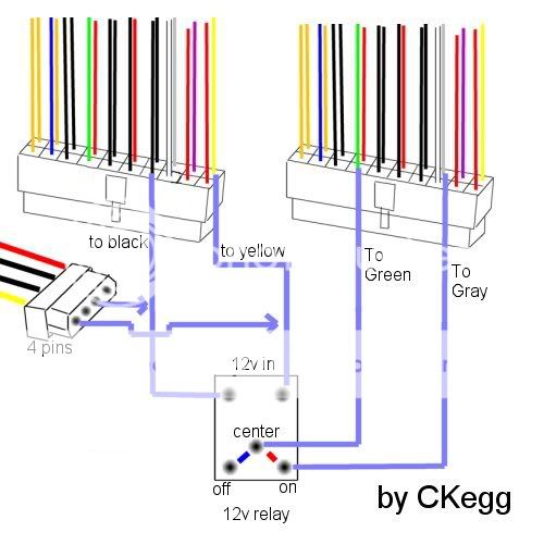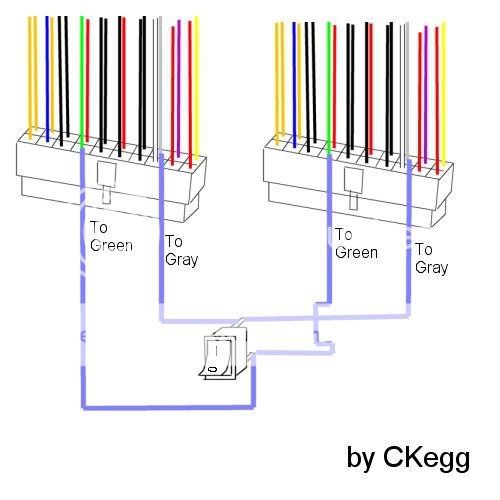 我把版這的回應 貼出來copyright by ckegg 一般來說有兩種接法....... 普遍的是這種. 綠色跟灰色接. ![]() 但我推薦使用這種接法, 左邊 12v 接到繼電器的來源可以使用主機版接頭上的黃跟黑, 或是第一顆主電源的大四p上的黃跟黑. ![]() 至於第二顆電源會用在哪裡, 通常是接周邊的東西, 像是風扇, 燈管等等的周邊...... 但是我試過, 接硬碟, 顯示卡也是可以的, 雖然第一顆電源跟第二顆啟動時會有時間差, 但是我試過是可以用的, 只是對於壽命來講, 不能保證. 第二張圖的接法也適用工業電源的接法 |