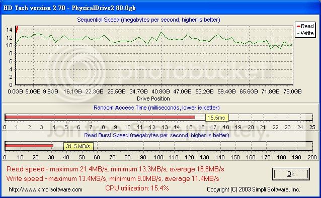等下個月就ok了... >_< 5/26收到跟九郎訂的從銳銨公司直接寄來的SR3500,跟之前去台南北門二樓買的兩顆硬碟,拿來組RAID 1 SR3500-WA的規格請看下面link http://www.stardom.com.tw/tw/SR3000-03.htm 兩顆硬碟分別為 Pri HDD: Seagate Barracuda 7200.7 80GB 2MB cache Sec HDD: HITACHI HDS7 82.3GB 2MB cache 因為怕同一時間壞,所以買不同品牌的硬碟比較保險。 而且受限於1394速度,買8m跟2m應該是差不多吧。 1394a卡為IOI U2FW-PC101 讀寫速度約如下 讀取測試的時候只有對Pri HDD動作,所以讀取速度不算快。 ![]() 附有一個 RAIDGuide Manager ![]() 可以E-Mail通知、Alarm聲響設定可以是蜂鳴器或是WAV檔、Event紀錄 、support network remote monitor、Multi-Remote等 反正除了監看風扇轉速跟溫度外,其他的我都用不太到,所以就沒去測了。 使用到現在的心得 1. 外觀真是漂亮,前面還有藍光的LCD,真不錯,可惜顯示讀取動作的LED不是藍色或白色的,是黃色的。 2. 硬碟不是很好裝,因為抽取盒的排線太靠近硬碟了,只好把抽取盒的排線拆掉先裝硬碟。 3. 6x6的風扇有點吵,也許是自己的電腦很安靜。 4. 有附個小鑰匙,不過我想那應該沒什麼用吧,要偷的話整顆抱走就好了呀,體積小又不會太重。 5. 安裝迅速,設定背面是要RAID 1 or 0,兩顆硬碟鎖上應插好,1934跟com port插上,開機,電腦就抓的到並且可以用了(WIN XP),不裝軟體也可以用。 6. LCD的對比沒辦法調整,要跟機器水平才能看到LCD的字,像我現在從上面看下去只能看到黑色方塊 7. 公司的mail回信超快的,而且回答的蠻詳細的,去問LCD是否可以調對比,不只回答不行,還說要改裡面的電阻才能調整。 目前只把它當外接備份系統用,只是要用Second Copy 2000軟體把PC的資料複製到外接RAID上而已,PC上的硬碟為兩顆40G。 會這樣做是因為兩個原因 1. 看到6x6就知道應該蠻吵的,果然不如我料,所以不適合長時間使用。 2. 1394a的傳輸速度當成一般硬碟用會很OX,如果要的話用1394b才比較好,但是版子沒64bit的PCI,所以即使裝了1394b卡+1394b RAID外接也不會快到哪邊去。 老實說用一顆外接硬碟就可以了,而且同樣價格可以買個規格差不多且可接4部IDE的1394a 外接RAID, 不過被那外觀吸引了,所以就敗了。 改天等硬碟出問題時再來玩一玩Auto-Rebuild的功能好了,看Manual是不需要PC就可以直接Rebuild。 心得最後 感謝九郎的幫忙,才能那麼快拿到那麼好的產品,否則在台南不知還要找多久才找的到。 接下篇 |