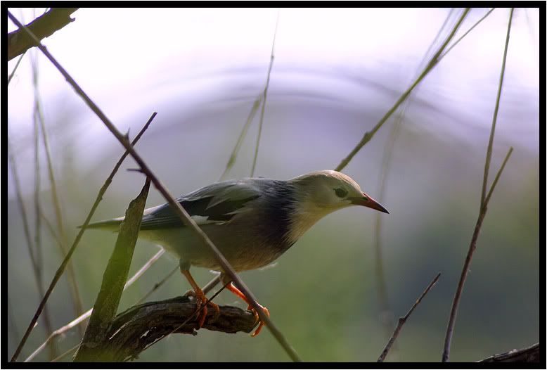 絲光椋鳥背後的光影很讚咧