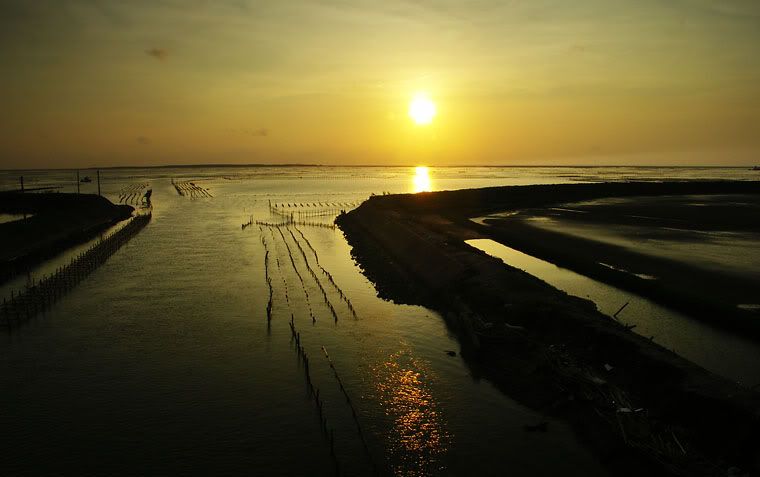 結果找到的時間有點晚,太陽也快下山了,腳架提著往堤防案上 跑去,果然是個十分美麗的地方,而今天的夕陽,雖然沒有風起雲湧 的華麗大景,不過夕陽上面點綴上幾片大雲,還算是層次豐富... 而且另有一種幽靜的情調。漂亮的七股~真是拍不膩。 ![]() |