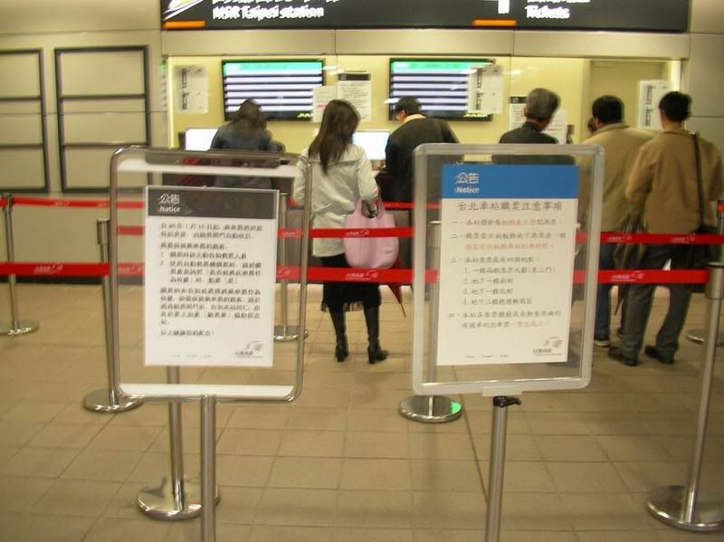 http://forum.pcdvd.com.tw/showthread.php?t=688957 因為我的休假日遇到連續大雨...所以...不能帶老相機出去 ...底片都買好了說...http://forum.pcdvd.com.tw/showthread.php?t=450427 萬般無奈之下,只好帶抗水相機PENTAX 43WR出門... (謎之聲:你玩WOW玩到中毒了,相機是防水不是抗水 .....抗性裝備症候群 )再買不到車票的第二天;我決定再去排一次... 結果...早上人真的比較少...因為台北車站一大堆人都在上班上課...很少專程來買高鐵車票的....這是早上8點多的台北車站售票窗口 ![]() 因為班次的不好設定;所以我過去是坐高鐵;回來是坐台鐵...難怪..大家都會卯起來坐高鐵(半價期間限定) ![]() 因為高鐵是新的交通工具,所以我必須承認...我不會坐 ...一直邊走邊問的去坐高鐵....在板橋站尋找中@@?![]() 順便提一下,因為不開閃光燈的關係,所以這裡所PO的圖很多都有手振狀態 ![]() 在板橋站也是有很多人在排隊買票...依照這樣的人群應該4小時可以排的到 ...![]() 因為板橋跟台中兩站都有台鐵跟高鐵共構之故,所以可以看到台鐵跟高鐵的月台 ![]()
