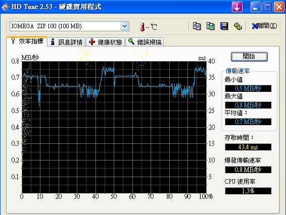 明天來用 HD Tune v2.53 測看看很久以前的 ZIP 100MB