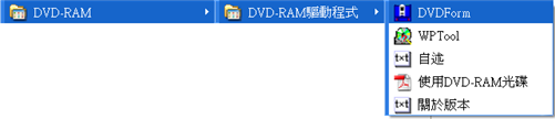 裝完dvdram驅動程式後會有一個程式組 ![]() 啟動格式化程式 ![]() dvdram不被支援也有可能,但可以在win啟動格式化�***子應該有被支援。 12X DVDRAM的機器沒有向下相容,不支援5X以下的片子。 10片99元喔 ![]()