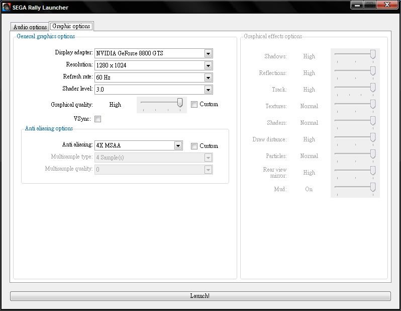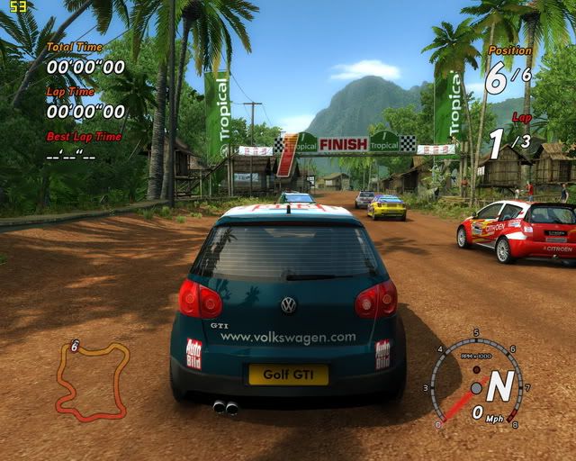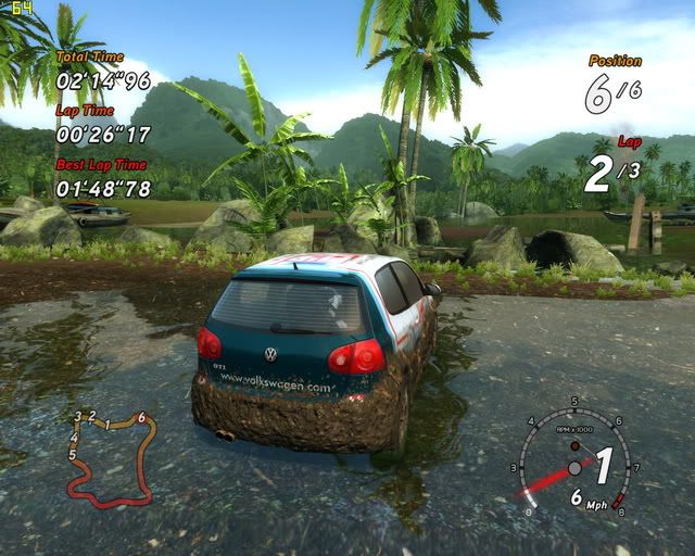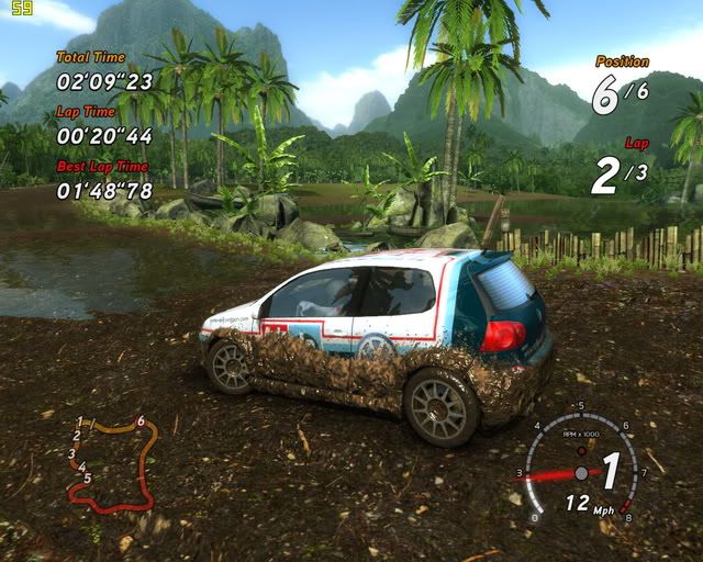 配備如下... ------------------------- CPU:Core 2 Duo E6420 2.13G oc 3.2G with HR-01 主機板:Gigabyte GA-965P-DS3(ver3.3) with HR-05 記憶體:創見 1GB*2 DDR2 800;x; VGA:鴻海 8800GTS 320MB 音效卡:Sound Blaster Audigy 2 Value 顯示器:ViewSonic VX1945wm DVD燒錄機:BENQ DW-1640 硬碟:W.D. 250G 7200rpm 8M 垂直寫入 POWER:康舒500w I-power ------------------------- 遊戲設定...這樣應改是特效全開八? ------------------------- 感覺電腦過彎都不用煞車...操作上有點不真實... 如果DIRT也有這樣的泥巴特效... 應該會很完美...