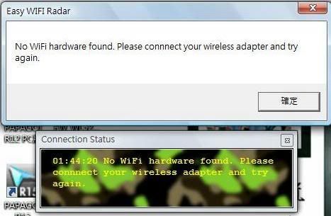 小弟利用筆記型電腦(os: Windows VISTA)執行「Net Stumbler」無線網路偵測程式想搜尋附近的 AP 及無線網路訊號強度時, 居然發生「存取被拒」而無法執行此程式, 請看下圖: ![]() 另外, 我安裝「Easy WiFi Radar」無線網路雷達程式也出現「找不到 Wi-Fi 硬體」的錯誤訊息, 請看下圖: ![]() 不知為什麼會發生上述的情形? 真是傷腦筋啊。 ps. note book 已內建 INTEL CENTRINO 無線上網, 連接無線基地台一切 OK 正常! |