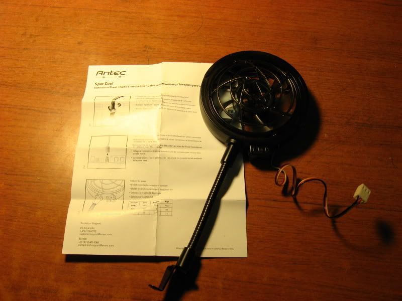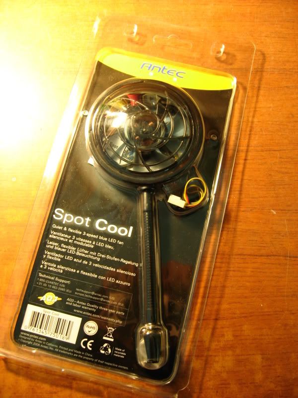 Antec Spot Cool 正面 ![]() 反面 ![]() 拆開後 ![]() 可調速度- 最慢2000rpm,最快3000rpm ![]() 可屈曲的 ![]() 腳部可直接駁在主機版孔上. ![]() 可以拆出來的風扇 ![]() 風扇本身也可以進行360度調整 ![]() 放在主機內 ![]() 沒有側面風扇,主機僅用前4後2的方式散熱 ![]()