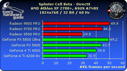 我用ti4200玩Splinter Cell,在簡單的場景下大約也有30 fps左右 ,但一到複雜光影和特效的場景或是轉移視點時,fps會"狂降",看了 眼睛真的很難過.在Splinter Cell下感覺ti4200老矣....... |