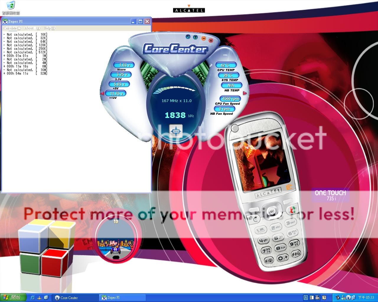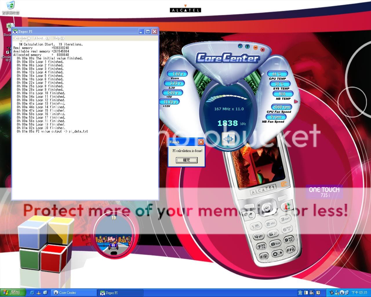 8M的跑沒兩圈就跳出來了...沒超頻都不穩 懷疑矽茂DDR400中 先貼上1M的.. ![]() 跑完1M.. ![]() |