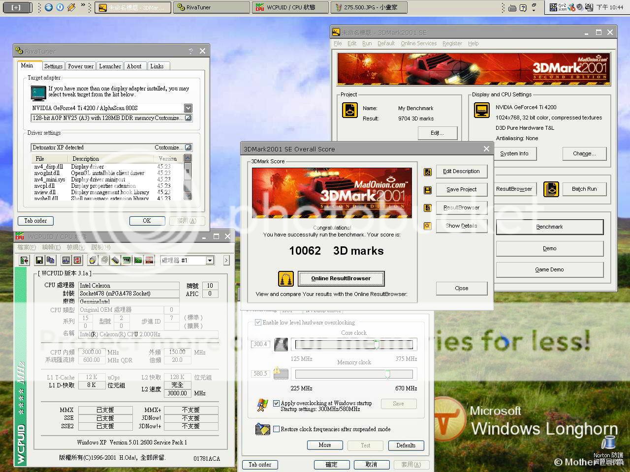 呃...3DMARK2001只要跑完前7個測試就可以得到完整的分數了 話說回來,如果是預設值下我覺得應該會有12000/4500的分數吧 ![]() |