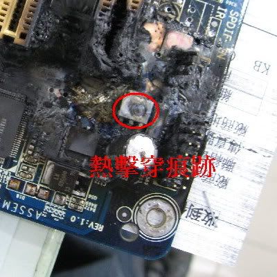 應該是110V 交流電直接在這邊短路到 才會這樣 不然就是被別的東西燒的 = = 電源供應器自己本身掛掉都不會出現這麼誇張的現象吧 |