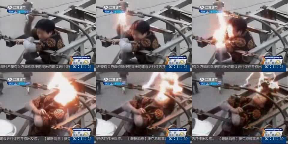 那要電到腦阿 而且如果不小心 把腦細胞煮熟了 那就不是記憶喪失 這麼簡單而已 這位大嬸看起來 電流只有經過表面皮膚而已 看來頂多 顏面神經受損吧 |