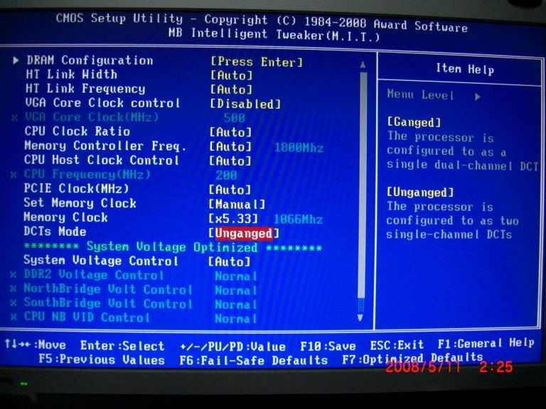 AMD的Datasheet上建議單核心或使用ECC的使用者用Ganged Mode 多核心的使用者使用Unganged Mode理論上會比較好。 |