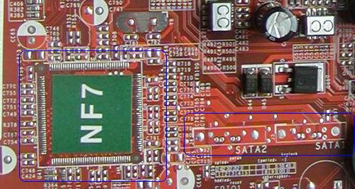 現在的問題在於有缺焊NF-S的部份到底有無 S-ATA 插座在上面,要是一起消失了,那應該是該元件跟 S-ATA 有關連
